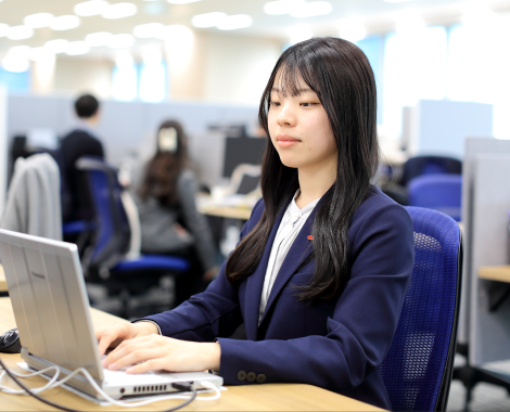 企画業務では、案件の進め方や関係者との調整など、仕事の進め方で悩むことがあります。また、それぞれの案件やテーマの分野が幅広く、社内規程やシステム、財務・会計、法律といった多岐にわたる知識が必要になり、勉強不足を痛感することもあります。それでも、最初は抽象的だった内容が関係部署の皆さんと協力して具体的な形になり、目標に到達したときは達成感を感じますし、その過程でまた新しい知識が身に付くので、自分自身の成長につながっていると感じています。